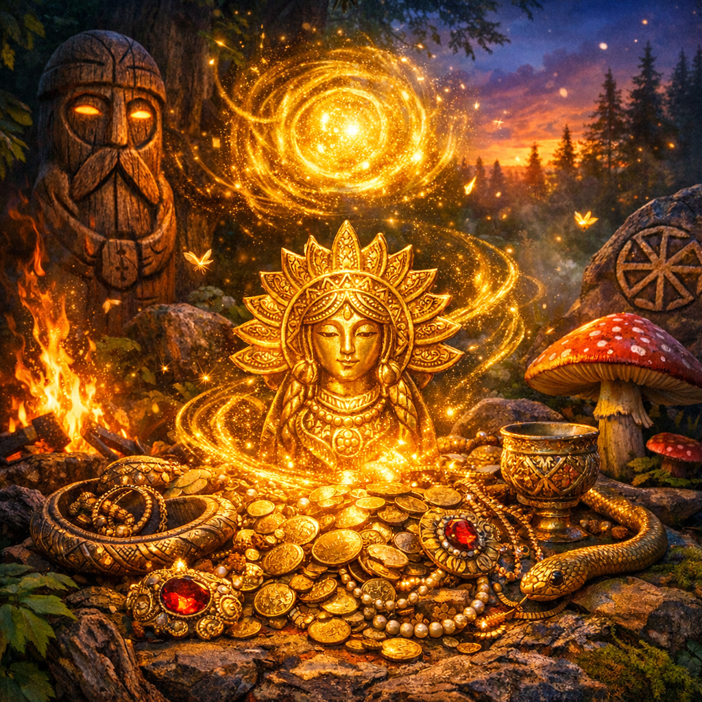 Если вы сейчас думаете: «Это выдумки, у славян не было такой философии» — отлично. Значит, вы уже готовы спорить. Потому что как только начинаешь собирать воедино фольклор, запреты, кладовые поверья и обрядовую логику, получается неудобный вывод: золото в славянской картине мира было не вещью, а силой. И сила эта вела себя как живая.