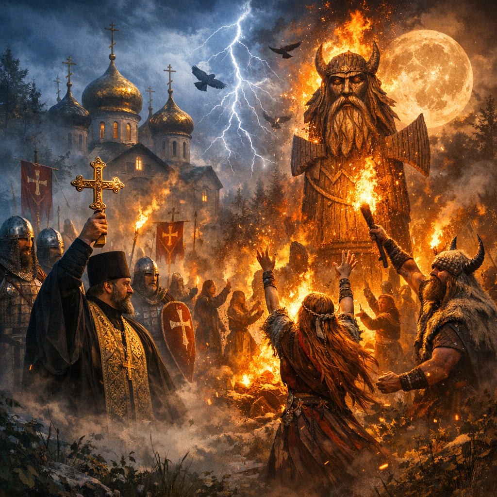 Церковь пришла на русскую землю не в пустоту. Она вошла в мир, где всё уже было «расписано» по местам: кто отвечает за урожай, кто сторожит дом, где просить удачу, как «разговаривать» с лесом и водой, чем откупаться от болезни и сглаза. И вот главный парадокс, который до сих пор бесит одних и заводит других: язычество не исчезло. Оно не просто выжило — оно вросло в быт, в праздники, в жесты, в запреты и приметы. А кое-где и в церковный календарь. Почему так вышло? Потому что «победить» язычество можно указом и проповедью, но невозможно выжечь его из памяти, тела и земли.