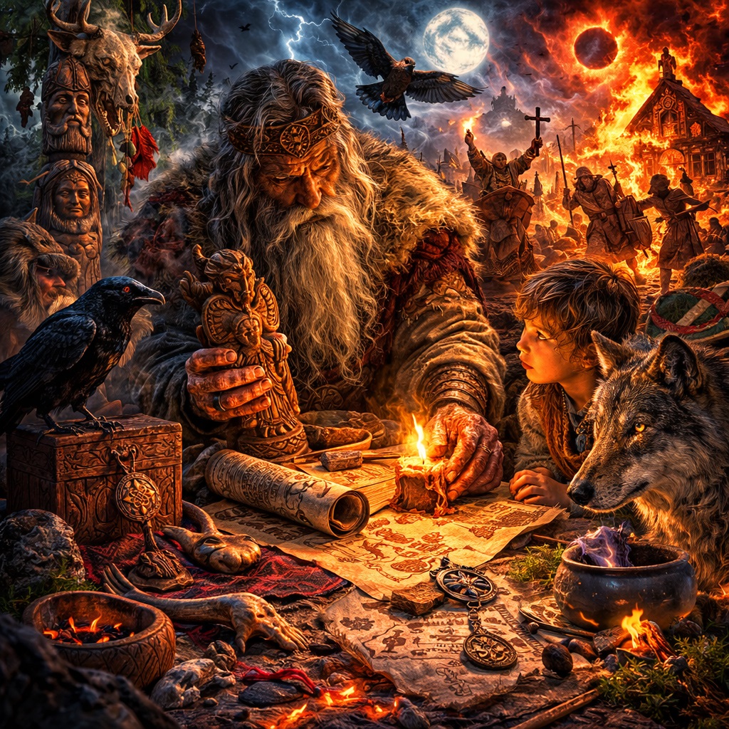 Потому что к древней религиозной опасности добавилась ещё и новая историческая. Старые боги, старые знания, старые имена, старые формы обращения стали не только сакрально рискованными, но и социально подозрительными. Их можно было объявить бесовщиной, грехом, ересью, колдовством. Значит, человек, хранивший старое знание, рисковал уже не только перед богами, но и перед новой религиозной системой.