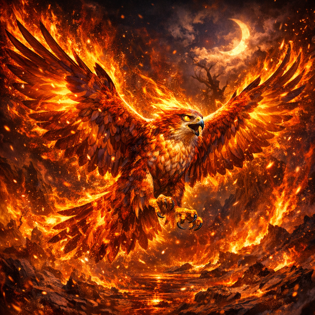 Рарог в славянском представлении — это не просто сокол с огненными перьями. Это образ огня в движении: искры, вихря, сухого жара, который не уговаривает, а действует. Его часто описывают как огненного сокола, но в ключевых деталях он ближе к стихии, чем к зверю. Сокол — форма, понятная человеку. А сущность — пламя, которое умеет быть быстрым, точным и беспощадным.