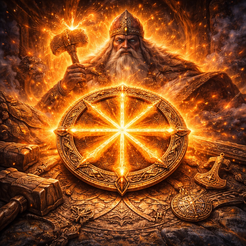 Связь со Сварогом усиливает значение знака. Сварог — это огонь, который создаёт форму. Без огня нет ковки. Без ковки нет порядка. Восьмилучевой Коловрат становится символом внутренней кузницы. Места, где человек формирует себя.